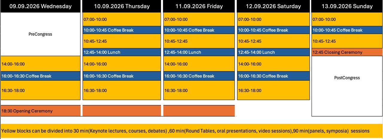 · Continental or International Societies Sessions : 60 minutes